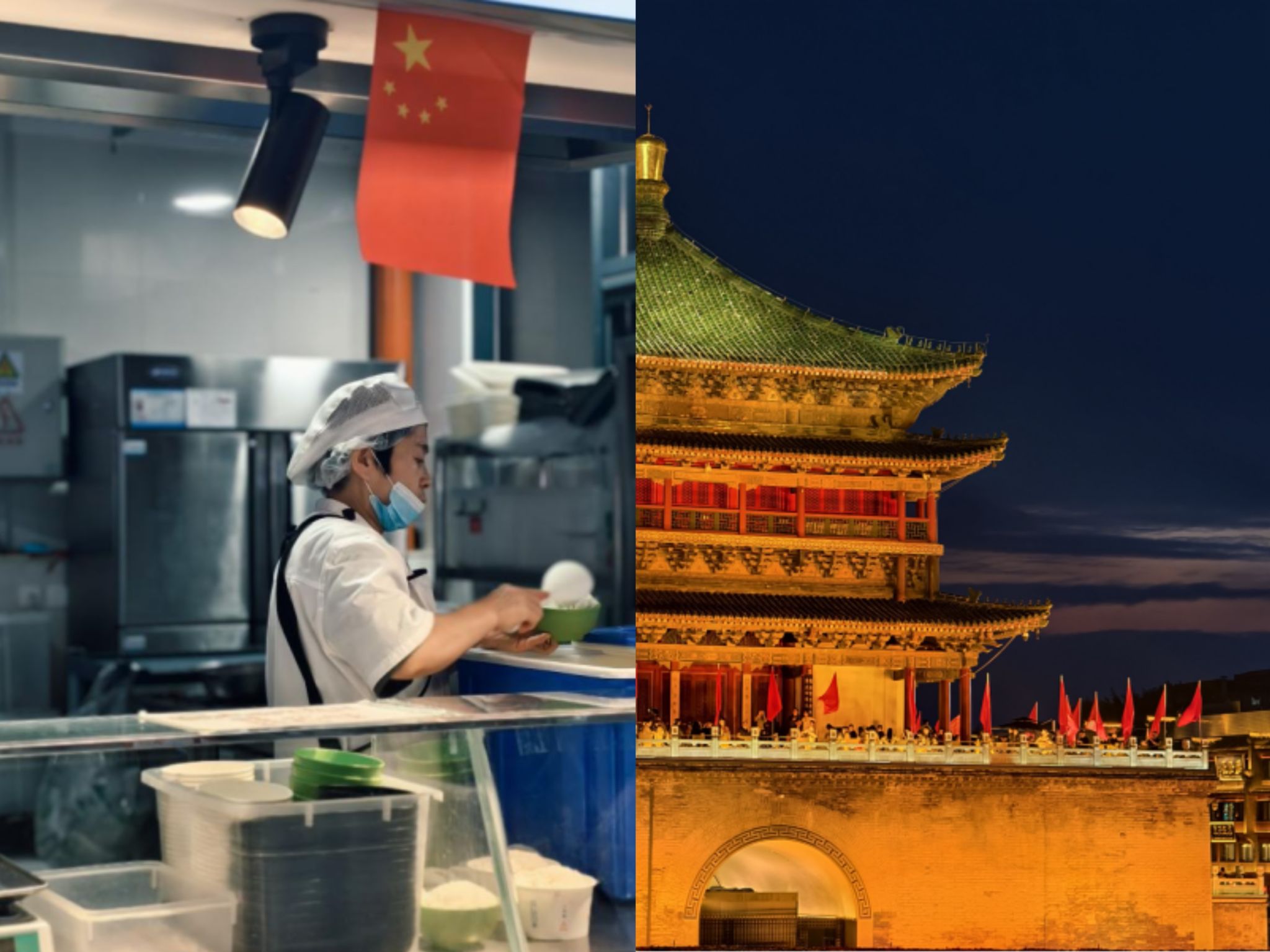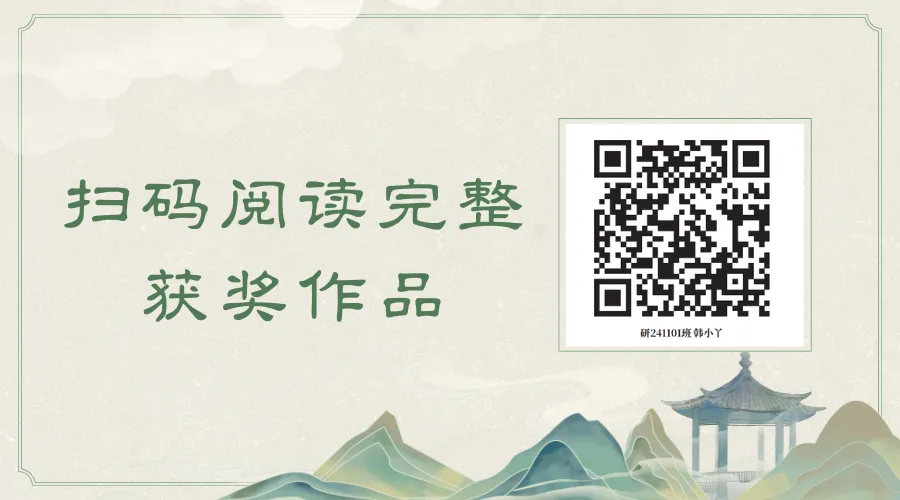 作品简介:孟珍同学在《关于坚守》里融入食堂场景,刻画餐饮人员身着工装忙碌服务,以坚守为留校学子送温暖的动人图景。在《双节与钟楼》中凝注盛世感悟,展现双节时西安钟楼青砖肃穆、红绸飘扬的华丽大气。