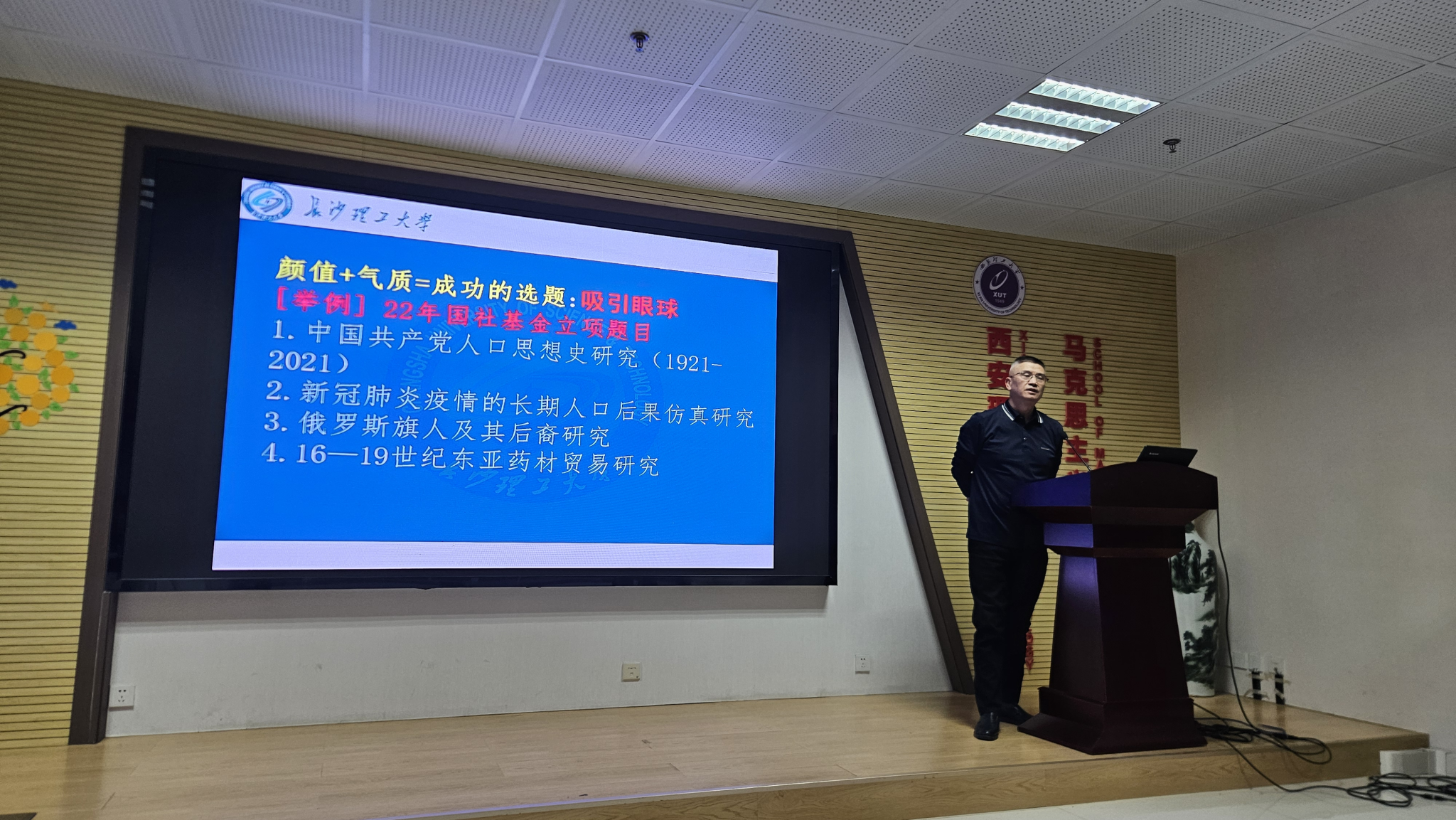 10月29日下午,学院邀请长沙理工大学马克思主义学院陈万球教授作题为《国家社科基金的选题策略与技巧》的专题报告。学院教师、研究生代表参加报告会,报告会由学院院长梁严冰教授主持。