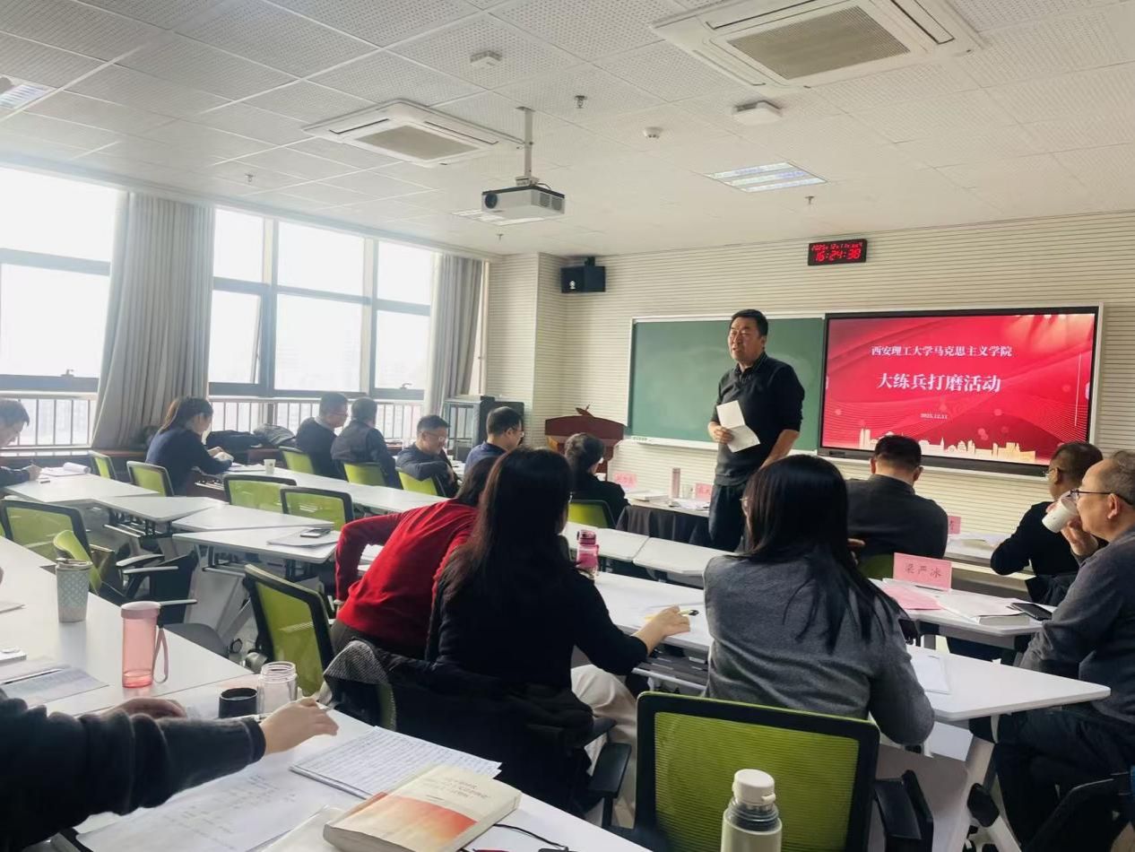 为做好2025年度陕西省思政课教师“大练兵”省级现场展示活动,提升参赛教师在即将到来的大练兵比赛中的实战能力,12月11日下午,我院在综南楼1009多功能实训室举办了2025年思政课教师“大练兵”教学展示赛前打磨活动。