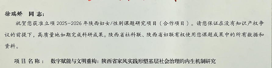5.徐瑞矫获批2025-2026 年陕西妇女/性别课题研究项目(合作项目)