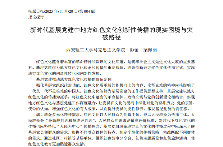 7.新时代基层党建中地方红色文化创新性传播的现实困境与突破路径