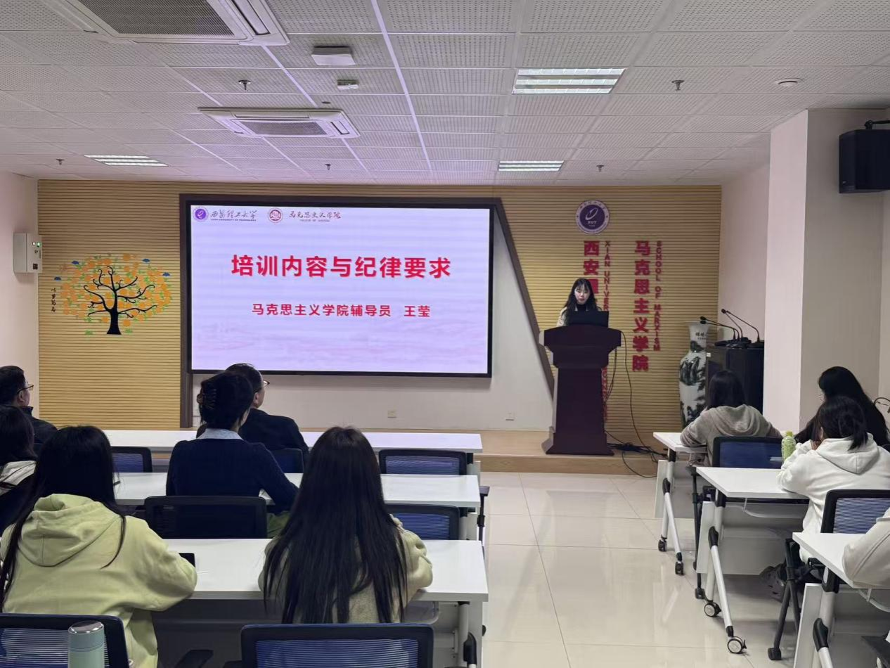 为深入学习贯彻党的二十届四中全会精神,切实加强入党积极分子的培养和考察,提升党员发展质量,10月30日,马克思主义学院分党校在综南楼911报告厅举行了第81期入党积极分子培训班开班仪式。学院党委书记张锐,党委副书记兼副院长陈文林出席,辅导员王莹主持开班仪式。