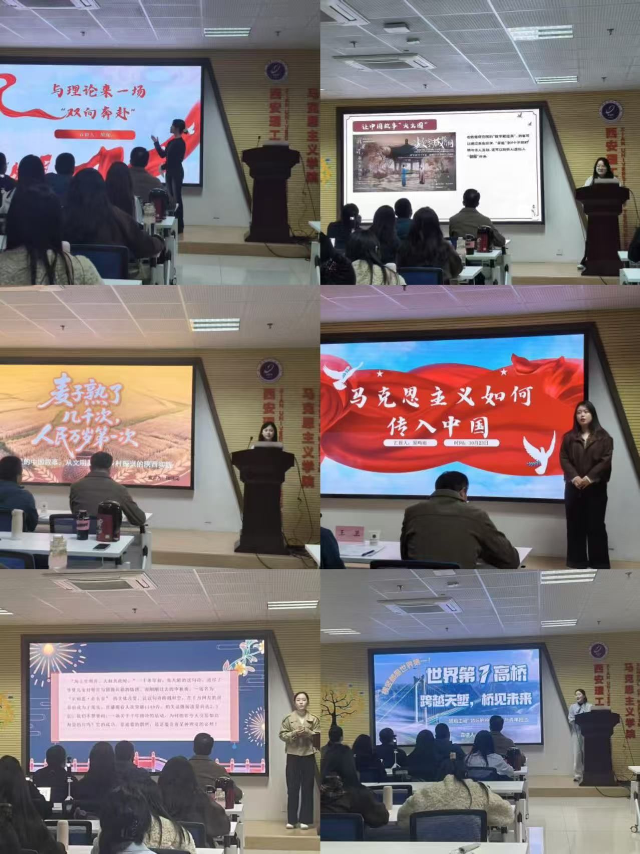 随后,我院的14位参赛选手依次登台,展开精彩角逐。选手们紧扣时代脉搏,选题涵盖生态保护、乡村振兴、文化自信、九三阅兵精神、大国基建成就、社会热点分析等多个领域。比赛过程中,选手们以精炼通俗的语言解读马克思主义理论的深刻内涵,用生动鲜活的案例诠释理论的现实价值,凭借稳健从容的台风展现对国家发展大势与时代使命的深刻思考,大家的表现赢得现场观众阵阵掌声。