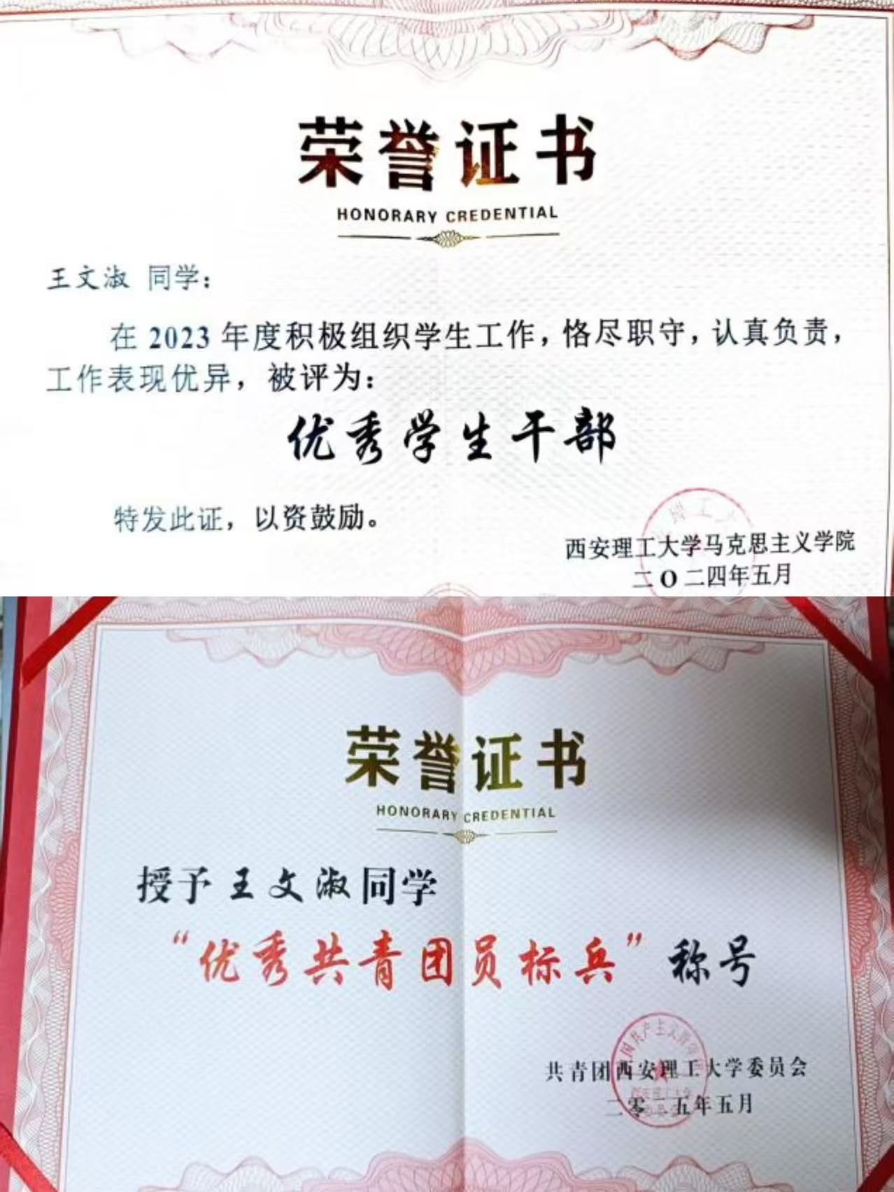 在三年班委的历练当中,他始终以自我提升为核心,在参与班级事务、统筹协作的过程中主动锤炼多元能力,每一次实践都是突破自我的契机。他注重在具体事务中积累经验,将班级工作作为打磨问题解决能力、团队协作能力与统筹规划能力的练兵场,不断拓宽认知边界、补齐能力短板,实现自我价值与集体发展的双向赋能,并于2024年获“尚能修美先进个人”,连续三年荣获“优秀研究生干部”称号。