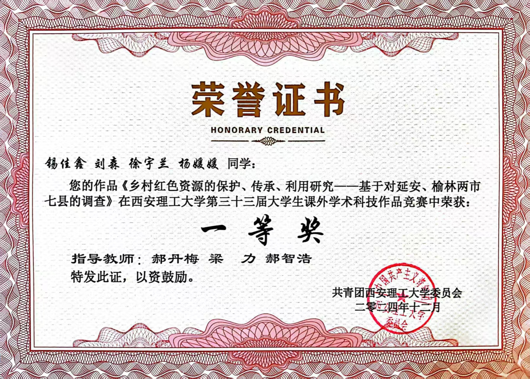 秉持知行合一的理念,徐宇兰积极投身社会实践与志愿服务。累计志愿服务时长达113小时,获评校级“优秀志愿者”。跟随调研团队深入延安、榆林2市7县的乡村红色革命基地,入户走访20余户,探访24处红色革命遗迹,发放线上线下调查问卷1000余份,团队调研成果获西安理工大学第33届学术科技作品竞赛一等奖,为推动党史学习教育与爱国主义教育发展注入青春力量。