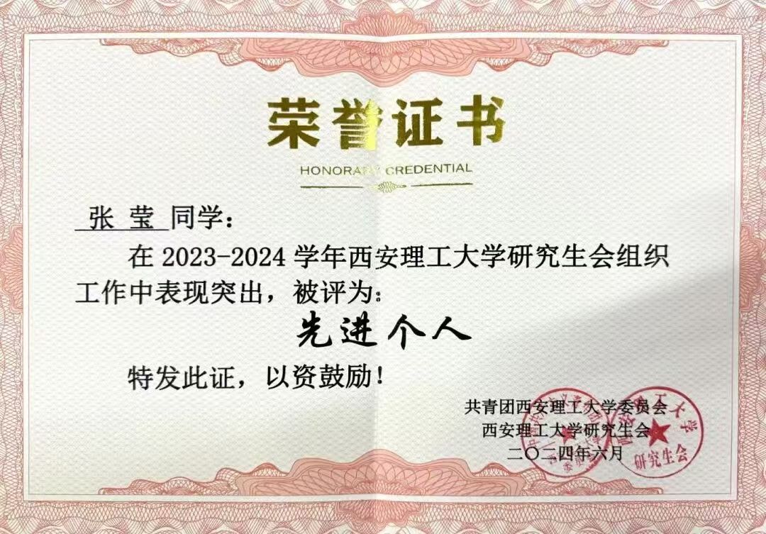 积极投身各类高水平竞赛,张莹在实践中检验所学、突破自我。作为负责人带领团队先后荣获第七届中国青年志愿服务项目大赛国家级银奖、第十届中国研究生智慧城市技术与创意设计大赛国家级三等奖、中国国际大学生创新大赛(2025年)陕西赛区省级铜奖,两次斩获校级“挑战杯”一等奖,以多元竞赛经历锤炼综合能力,展现了青年学子的创新活力与团队协作精神。