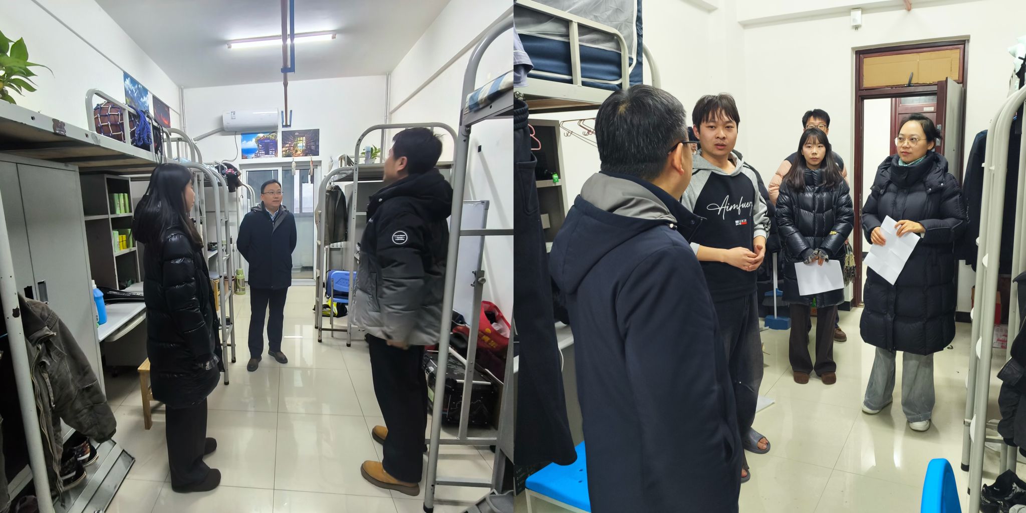 各年级辅导员老师们分别围绕元旦假期的交通安全、网络安全、人身安全、财产安全、宿舍安全等方面对同学们进行了安全防范与指导,深入阐述了学院安全管理工作的具体要求,通过观看视频、分析案例,同学们的自我保护意识得到增强,安全文化氛围更加浓厚。学院也同步开展了节前宿舍安全专项检查,学院党委副书记兼副院长陈文林带队深入各年级学生宿舍,重点排查用电、消防等安全隐患,并提醒学生注意冬季防寒保暖、保持环境卫生。走访过程中,老师们与学生亲切交流,了解近期学习生活情况,给予学习建议与生活指导并嘱咐同学们自觉遵守安全管理规定,无论假期留校抑或外出返乡,均须严守安全准则。