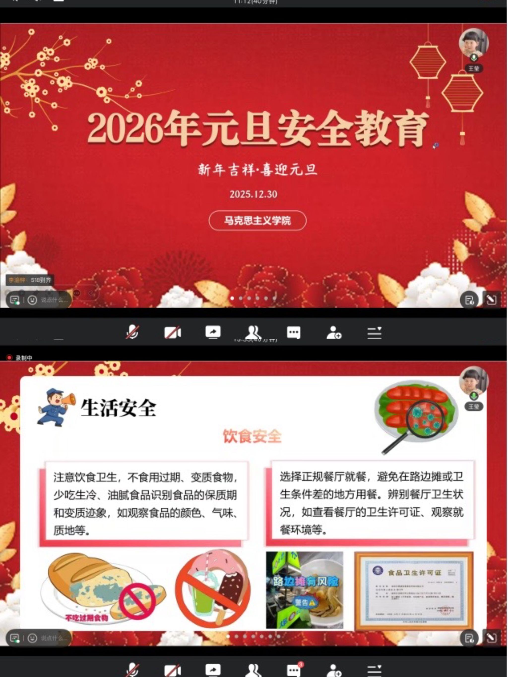 为深入贯彻落实学校关于元旦假期校园安全稳定工作部署,全面排查整治风险隐患,切实保障学生生命财产安全,维护校园平安有序。12月30日至31日,马克思主义学院组织开展主题教育及宿舍安全隐患排查活动。