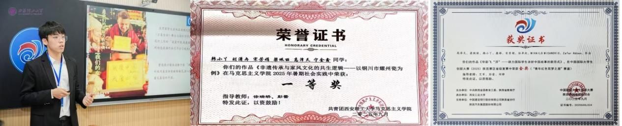 “实践是检验真理的唯一标准”。在“家立方青马志愿实践队”中,他与队友们紧密合作,共同完成了关于非遗与家风文化的深度调研与实践,团队获评学院暑期社会实践一等奖。在文化传播领域,他带领团队打造的《华彩飞“洋”——助力国际学生讲好中国故事的新范式》项目不仅拿下中国国际大学生创新大赛“青年红色筑梦之旅”赛道国家级铜奖、省级金奖,还获校级青年志愿服务项目大赛金奖。