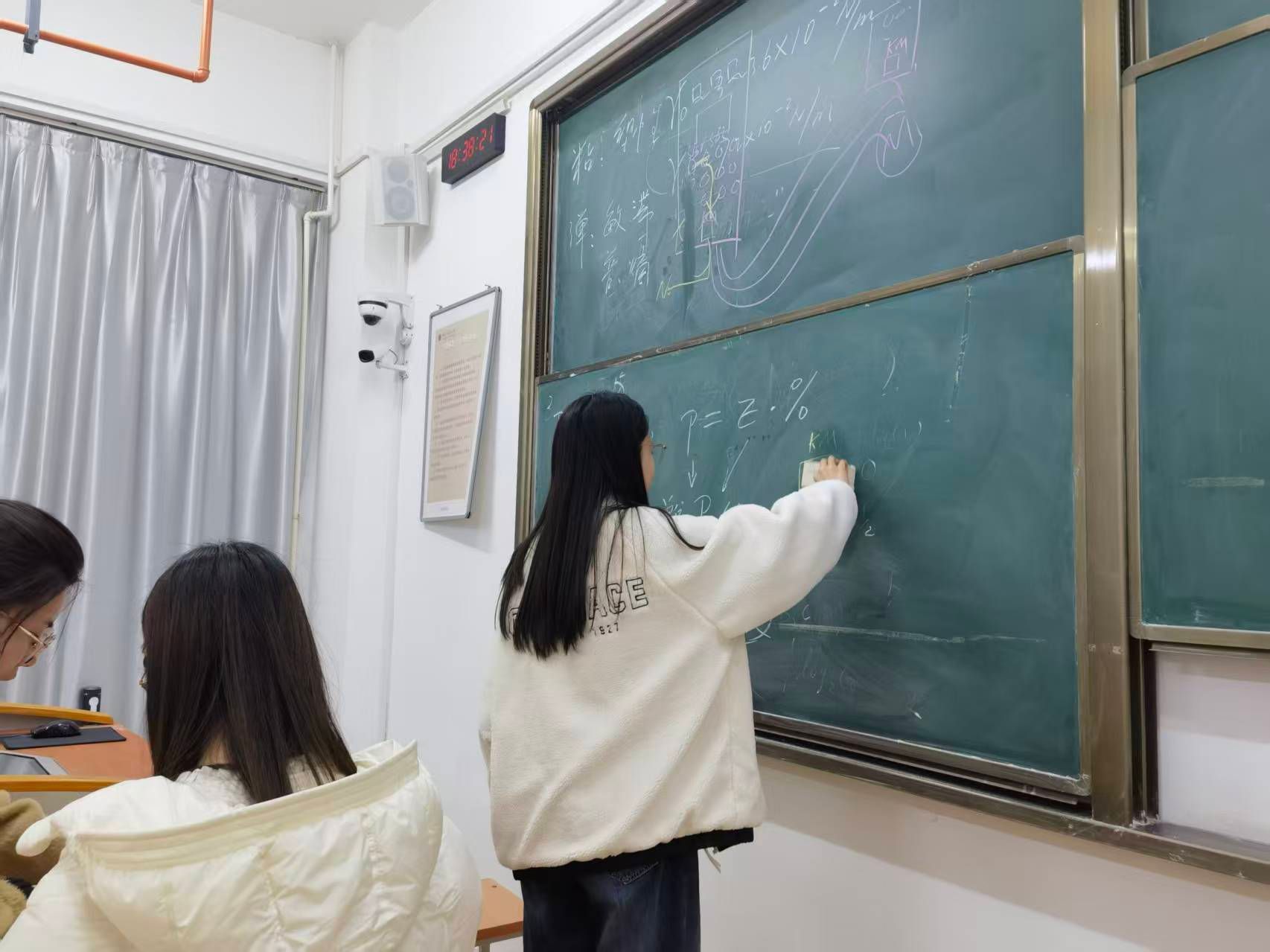 随后,“净美课堂志愿行”正式启动。支部成员分成5个小组,走进教学楼各个教室,分工协作、默契配合,大家俯身捡拾散落的废旧粉笔头,仔细擦拭黑板上的字迹,认真清理讲台及角落的灰尘,不放过任何一个卫生死角。同学们不怕脏、不怕累,用双手还原了课堂的整洁有序,让每一间教室都焕发出新的生机,以实际行动践行“奉献、友爱、互助、进步”的志愿精神。
