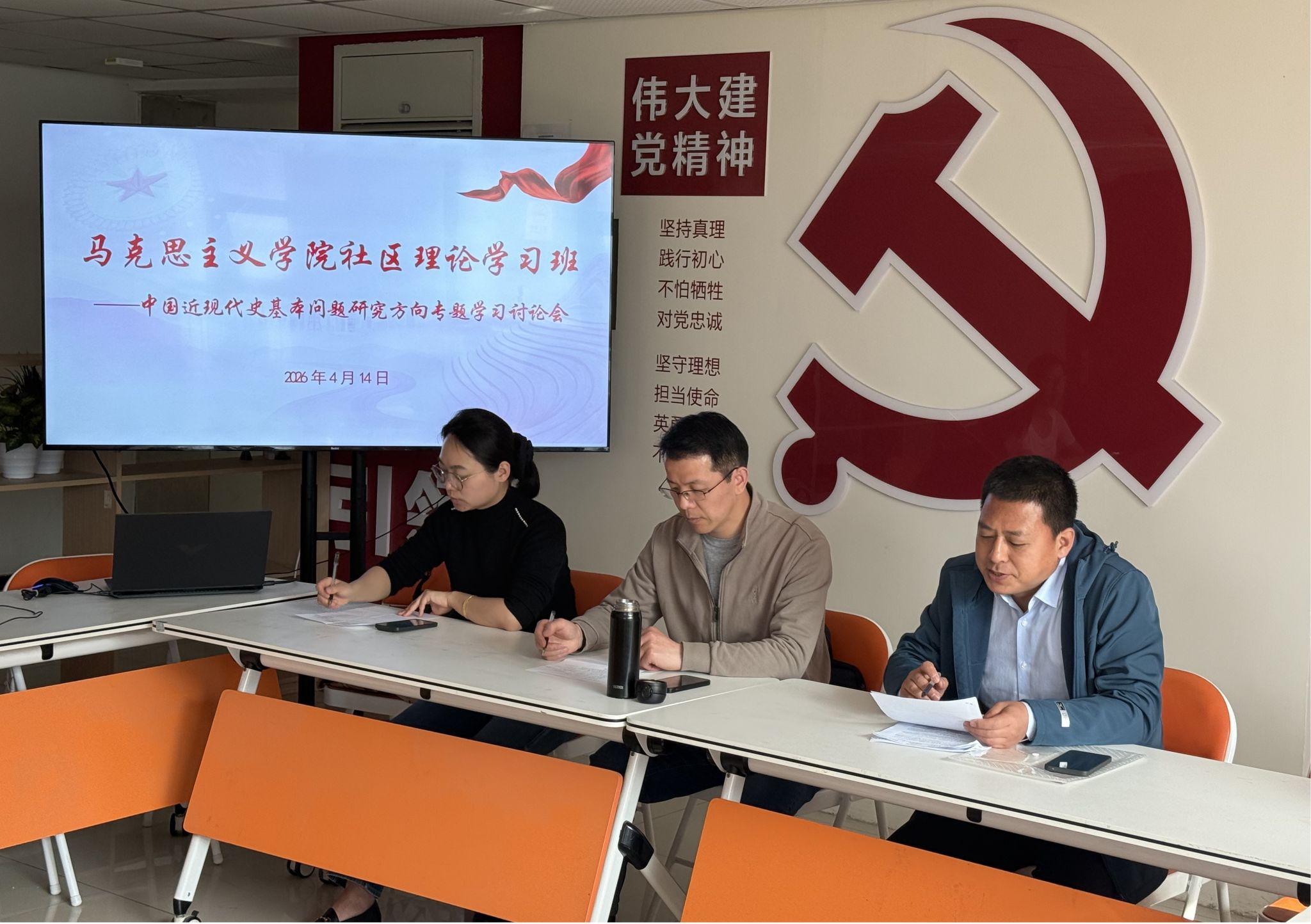 4月14日下午,我院社区理论学习班在11号公寓4层一站式学生社区举办“中国近现代史基本问题研究方向专题学习讨论会”,围绕论文写作难点、学习方法提升等内容开展专题分享与指导。本次活动主题聚焦夯实学生专业理论基础和提升论文写作质量,邀请到中国近现代史纲要教研室王卫老师和潘胜强老师,活动由辅导员王梦主持,2025级中国近现代史基本问题研究方向的所有硕士参加本次活动。