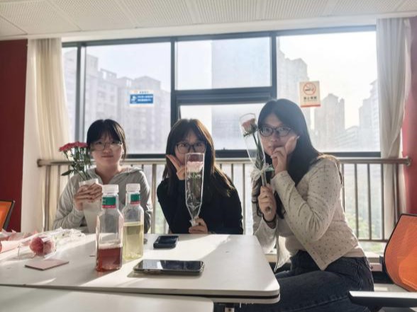 随后,大家围坐在一起,动手制作花束,修剪枝叶、搭配花材、整理造型,在亲手创作的过程中放松身心、增进情谊,现场欢声笑语不断,暖意融融,每一束精心制作的花束,都成为大家传递美好、治愈心灵的载体。